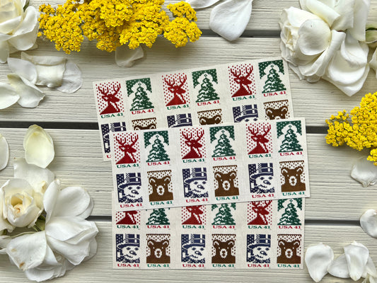 Booklet of 20 Christmas Tree Stamps - Vintage Season's Greetings Stamps for Mailing from 1990
