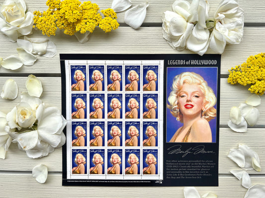 Sheet of 20 Marilyn Monroe Postage Stamps - Legends of Hollywood USPS Stamps for Mailing from 1995