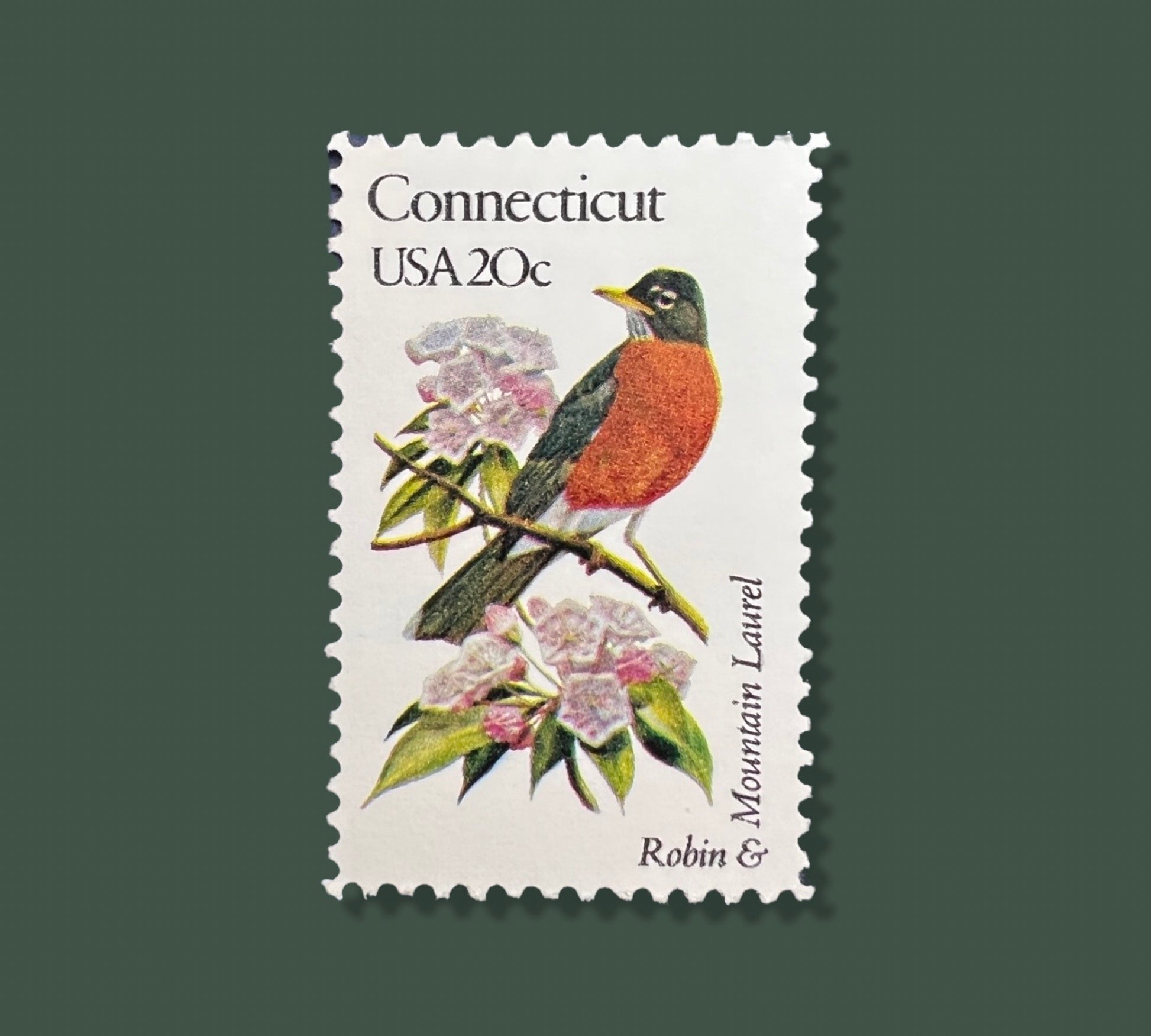 25 Vintage Connecticut State Flower & Bird Stamps - Bridgeport/Stamford/New Haven USPS Stamp - Mountian Laurel Postage Stamp