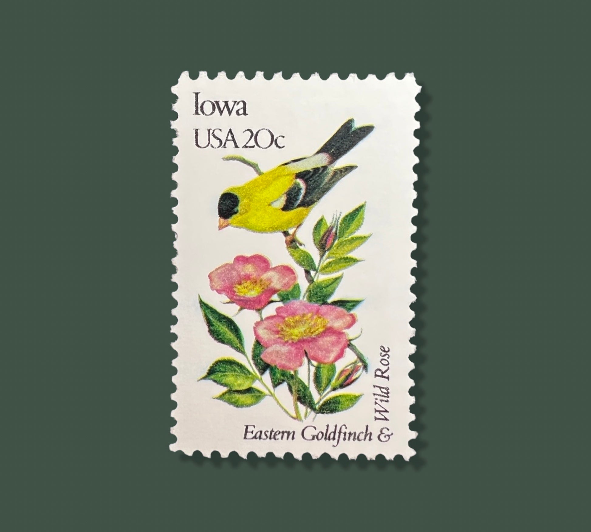25 Vintage Iowa State Flower & Bird Stamps - Des Moines/Cedar Rapids USPS Stamp - Wild Rose Postage Stamp