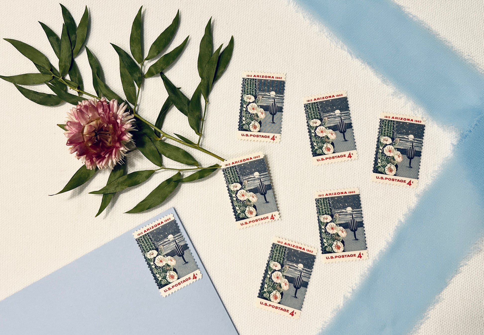 This listing includes 40 Arizona unused, vintage stamps from 1962. Each stamp has a face value of 4 cents