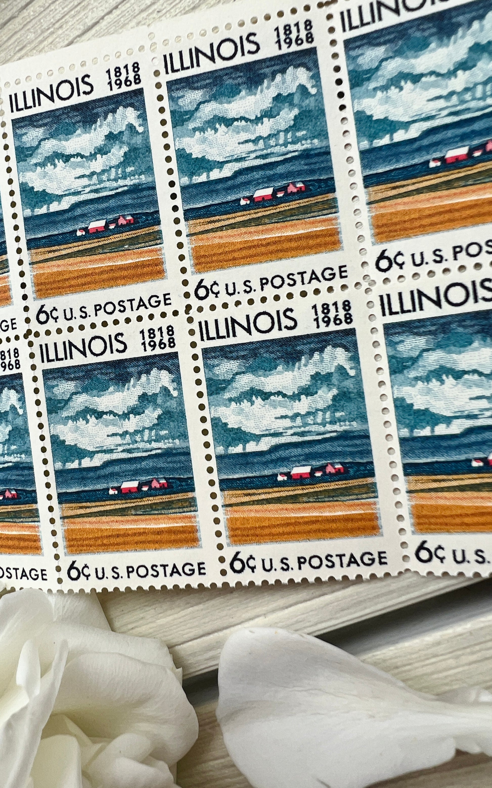 Block of 20 Illinois Stamps - Vintage Illinois Stamps from 1968