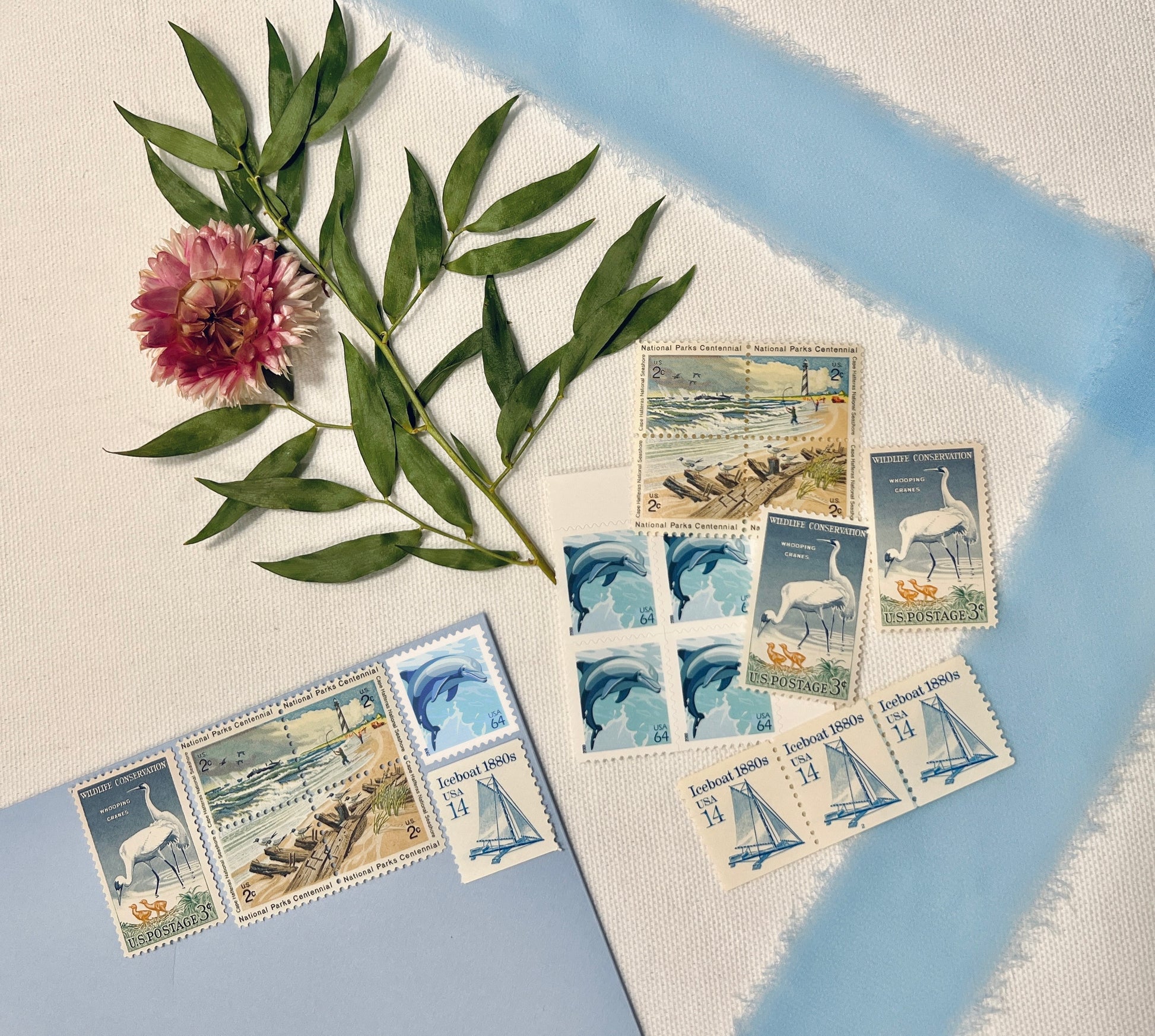 Light Blue Coastal Postage Stamp Set - Curated Beach Blue/Teal/Turquoise USPS Stamps for 12 Envelopes