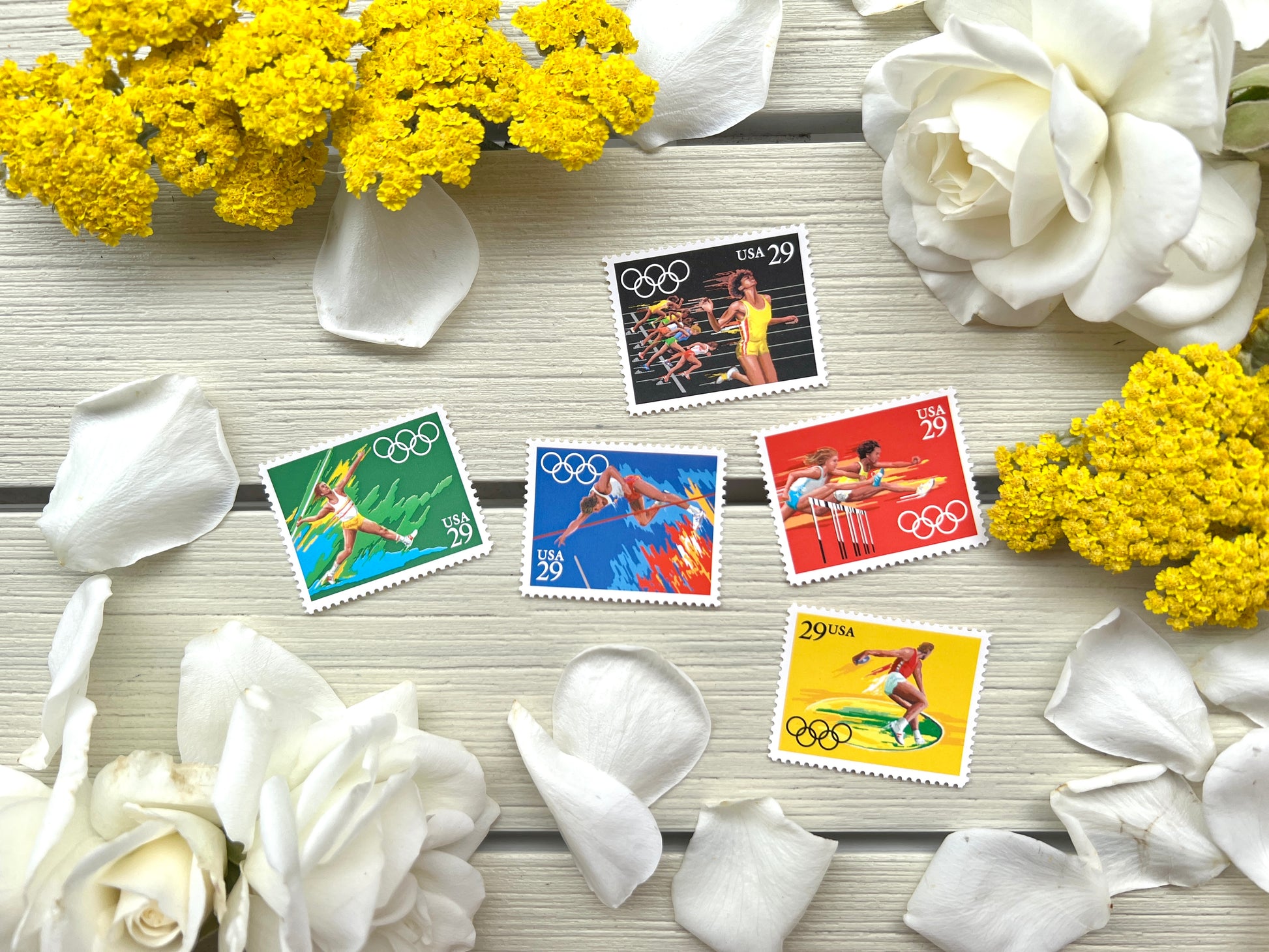 This listing is for vintage Olympic Track and Field Stamps that have a face value of 29 cents. These were issued by the USPS in 1991. Fun fact: these were the first computer designed stamps from the post office! These are great for mailing or to give as a gift.