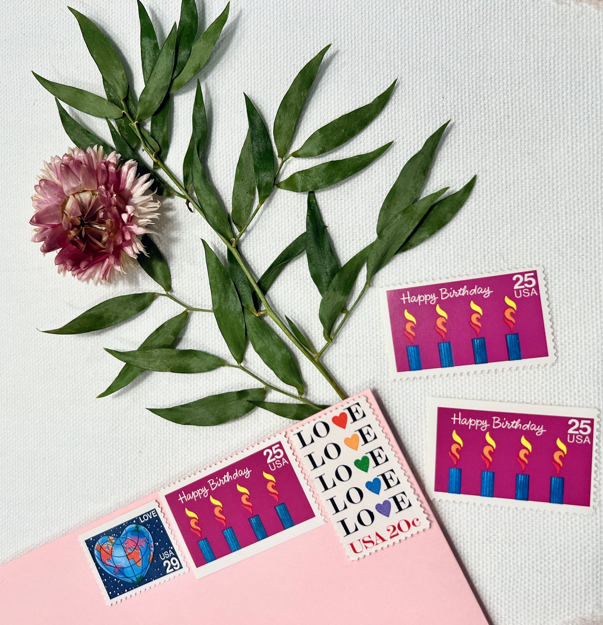Vintage Happy Birthday Postage Stamp Set - Birthday, Love, Heart USPS stamps