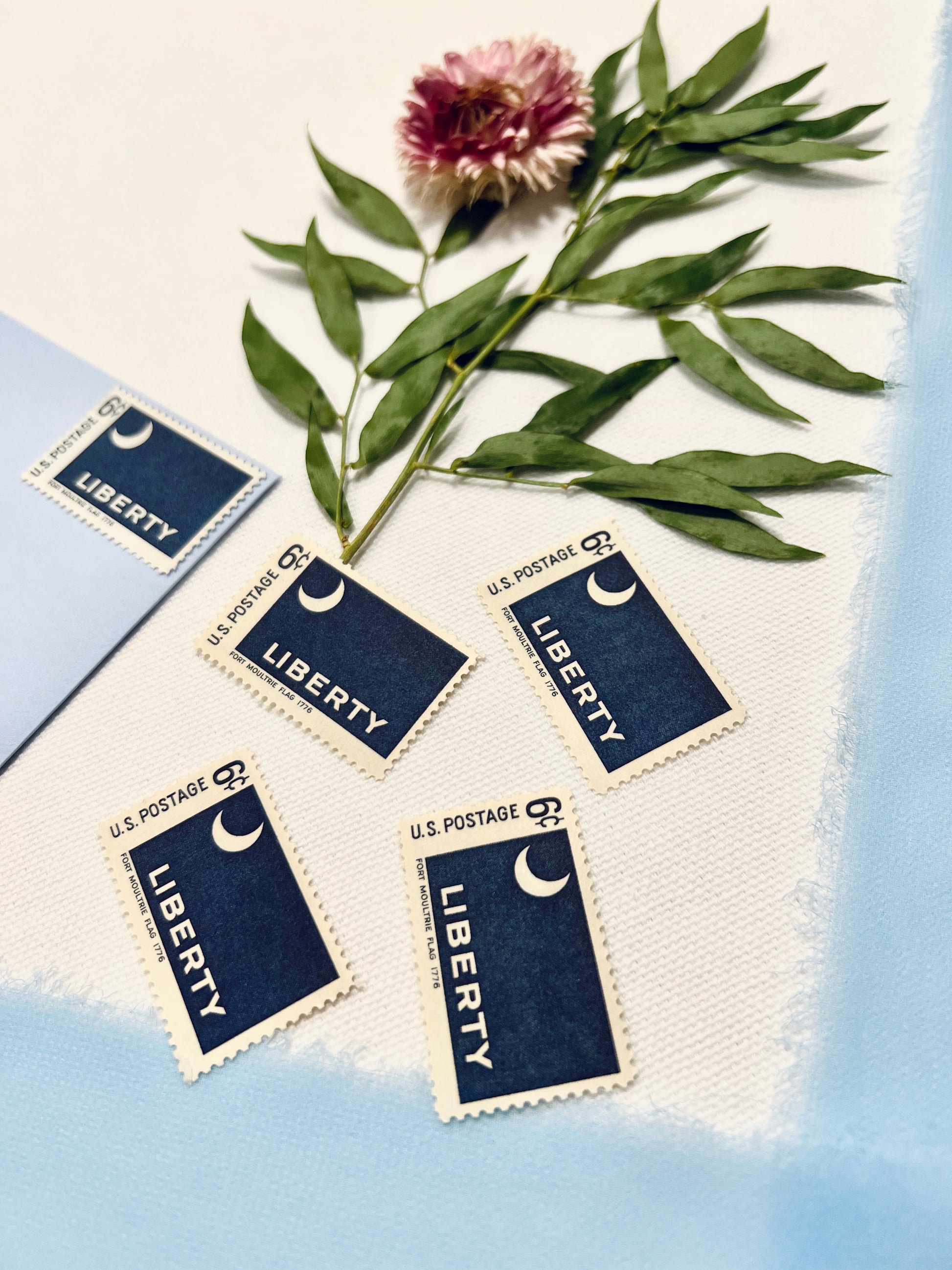 Navy Blue Liberty & Moon Postage Stamps - 1968 Vintage USPS Stamp