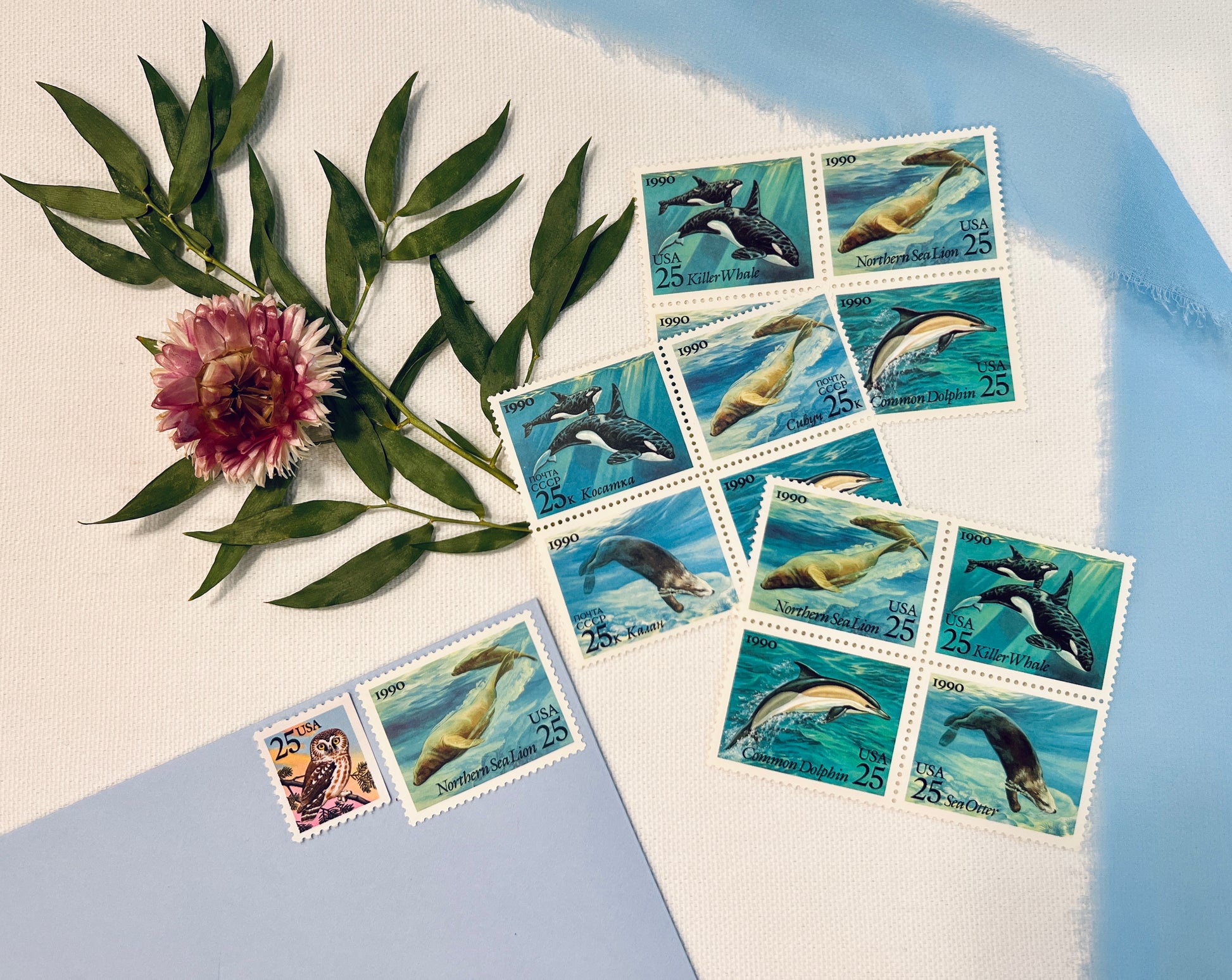 Ocean Stamps - 1990 Vintage Sea Life Stamps - Additional Ounce Postage
