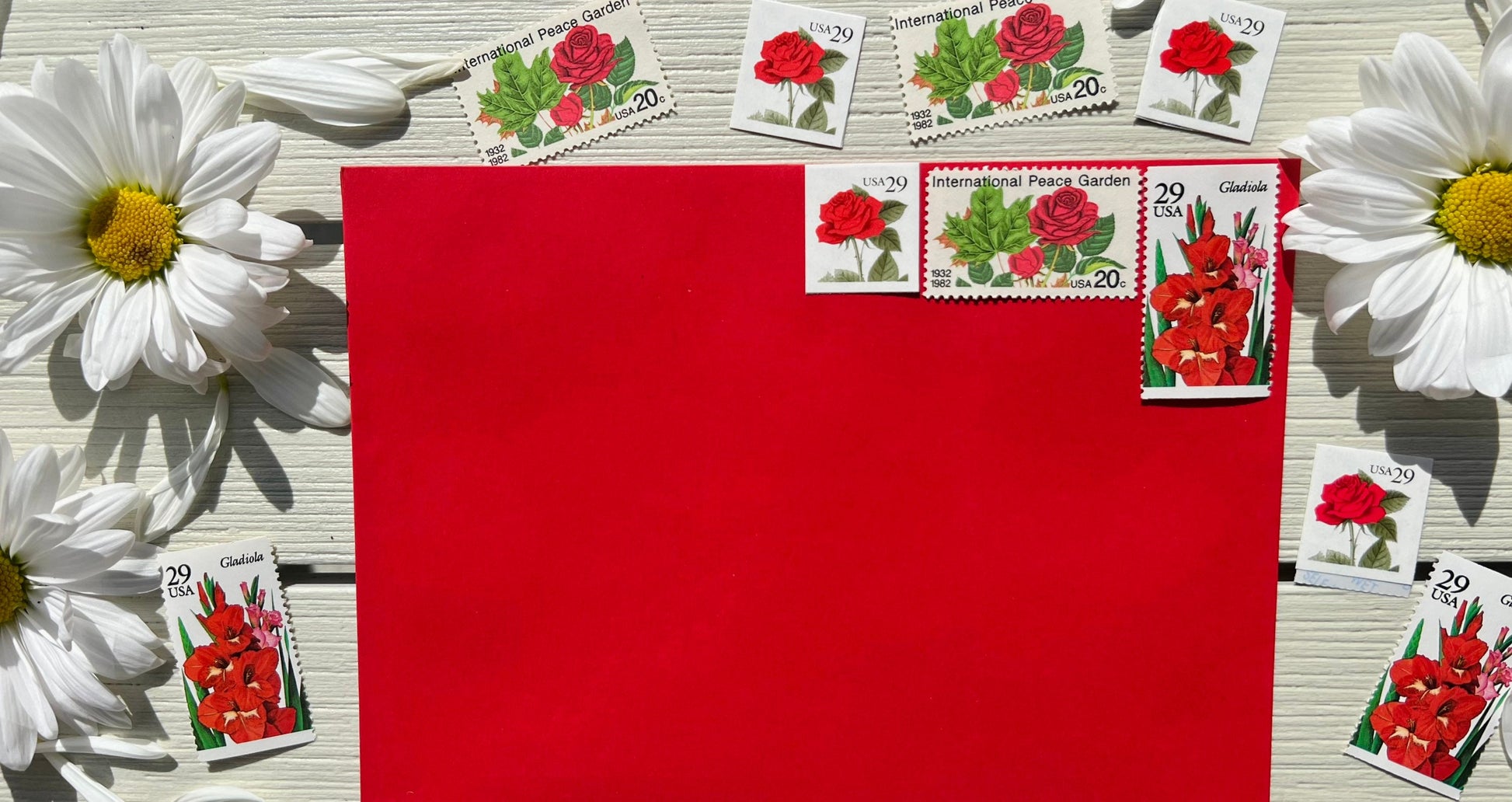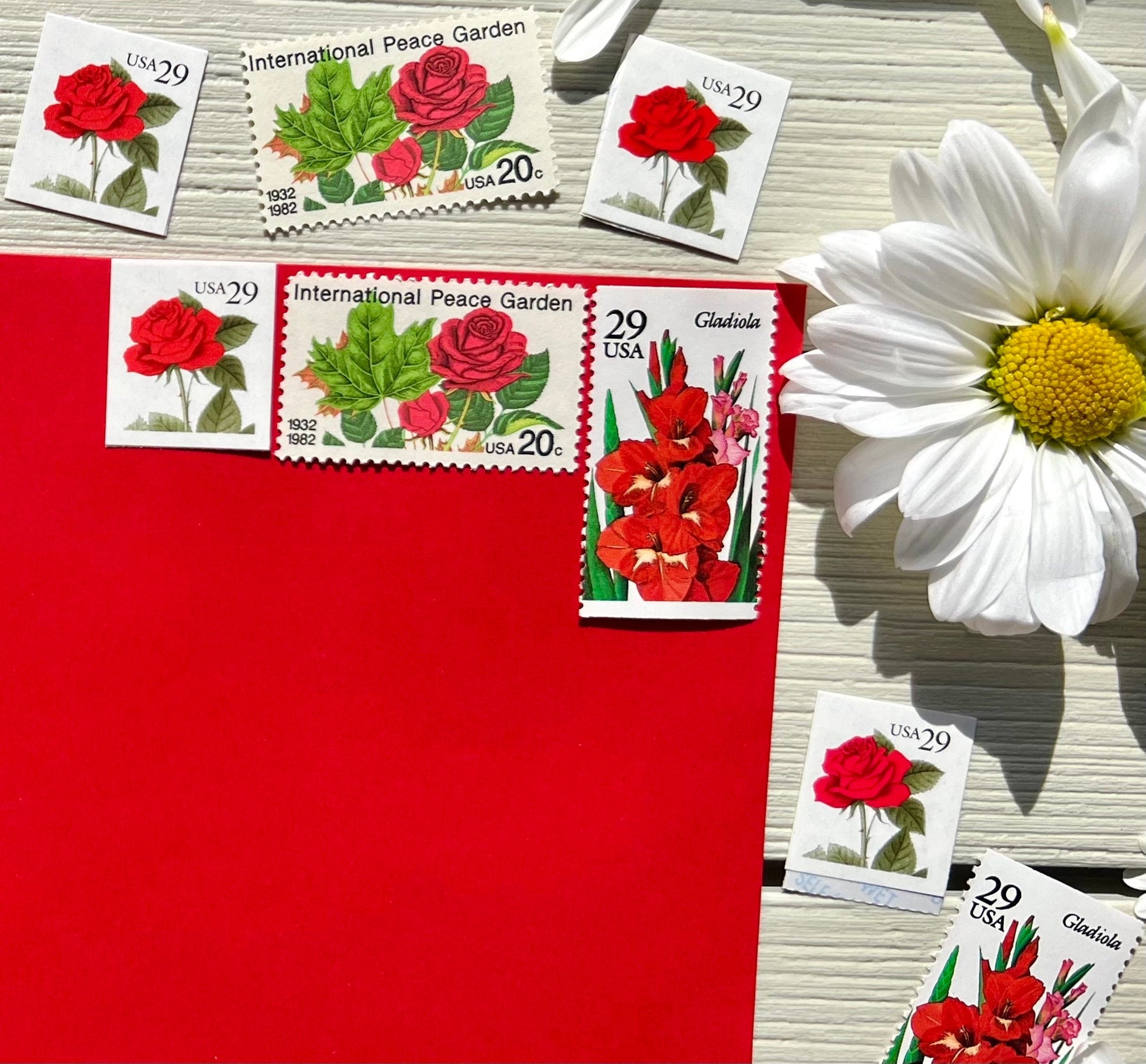 Vintage Floral Curated Postage Stamp Set - Red Flower USPS Stamps for Invitations and Birthday Cards