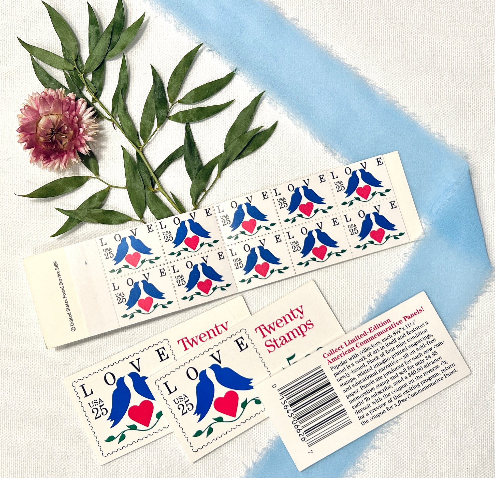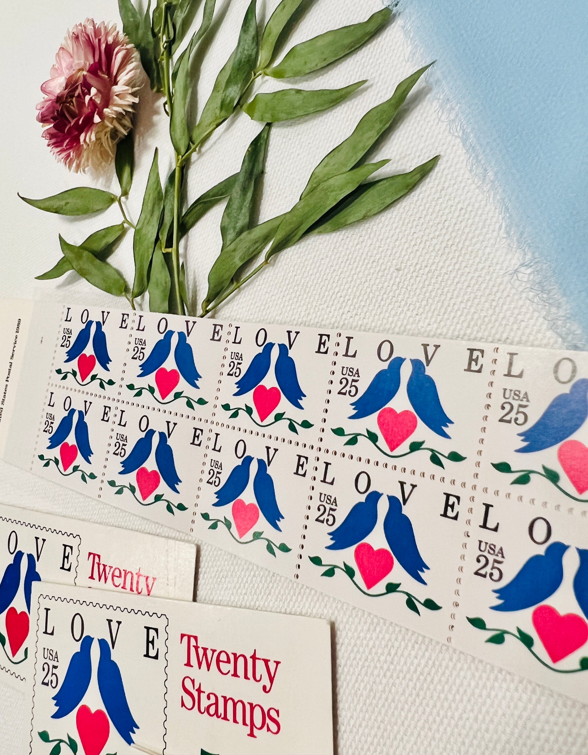 This listing includes a booklet of 20 USPS 1989 blue love bird stamps. Each vintage stamp has a face value of 25 cents. These stamps are great for wedding invites, birthday cards & spring/summer mail!